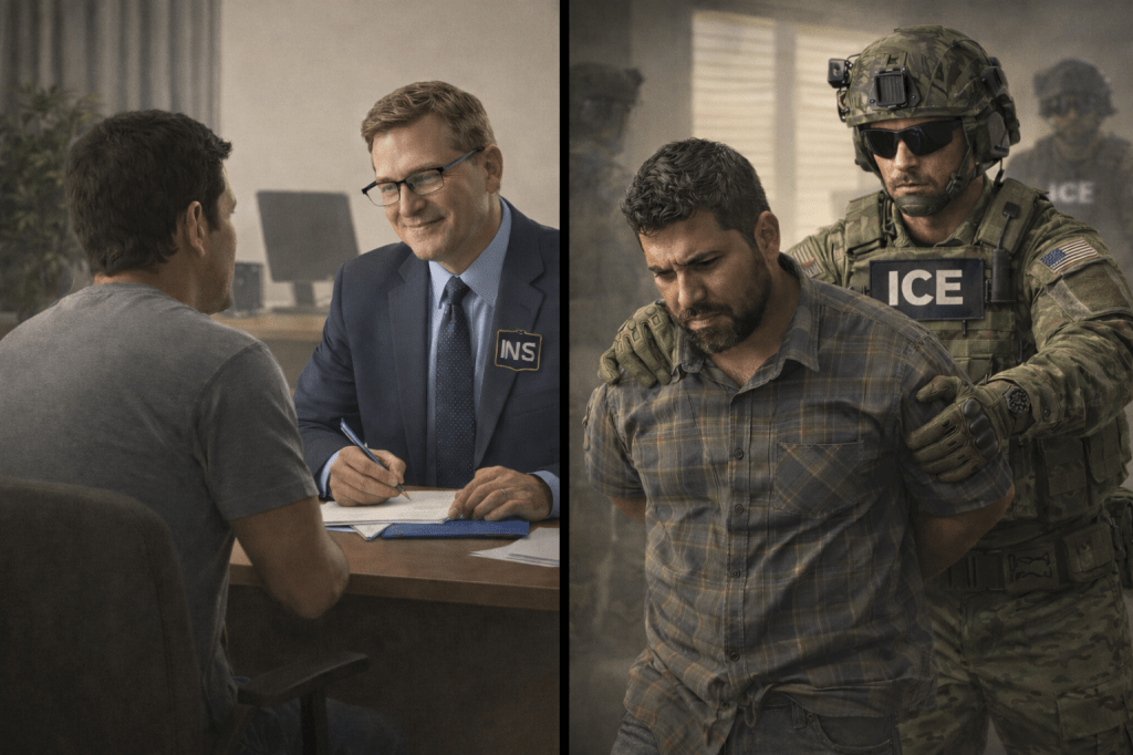 The underlying law did not change. Immigration violations remained civil matters. What changed was the method of enforcement. Immigration authority increasingly came to be exercised through tools borrowed from criminal policing—armed agents, interior arrests, mass detention, and large coordinated deployments—while still operating under civil rules that provide fewer protections.