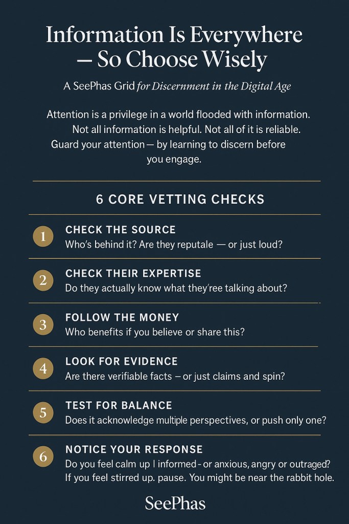 This discipline is called digital discernment — the ability to make thoughtful, ethical, and informed choices about what you consume, believe, and pass along online.